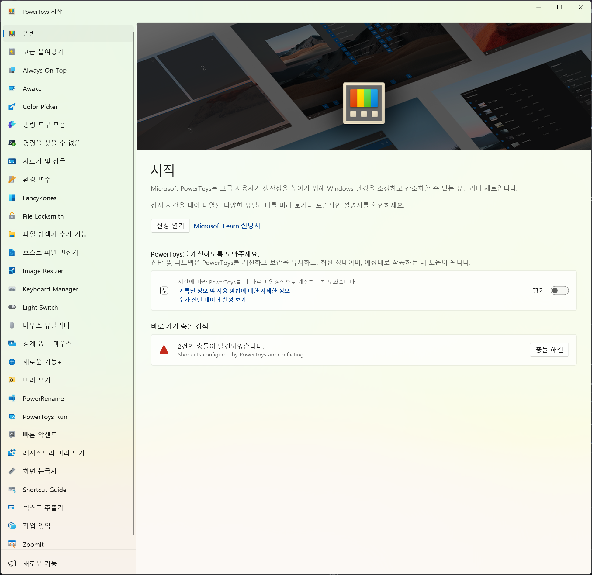 Microsoft PowerToys는 파워 유저들이 생산성을 높이기 위해 Windows 환경을 조정하고 간소화할 수 있도록 해주는 무료 Microsoft Windows 유틸리티 모음입니다. 이러한 유틸리티 및 셸 향상 도구들은 사용자의 필요에 맞게 Windows 10과 Windows 11을 사용자 지정할 수 있도록 설계되었습니다.