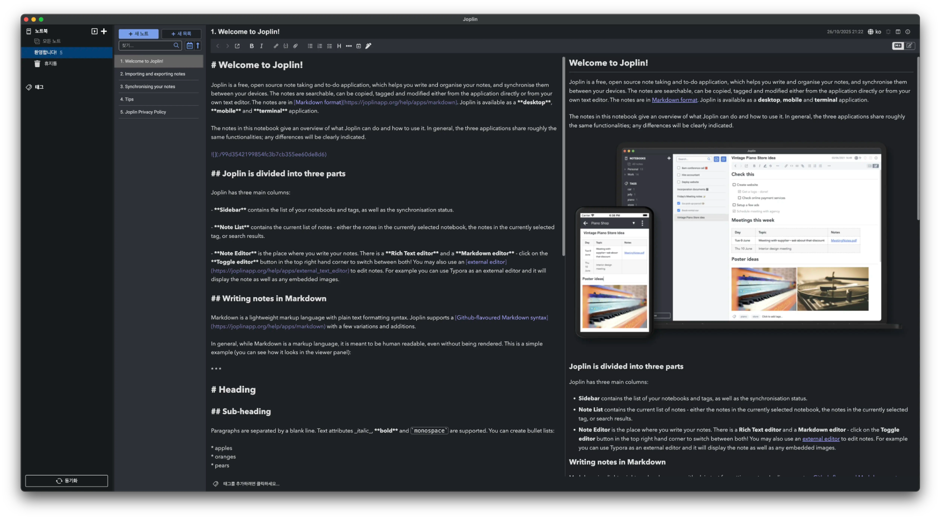 Joplin은 오픈 소스 노트 필기 앱입니다. 여러분의 생각을 기록하고, 모든 기기에서 안전하게 접근할 수 있습니다.